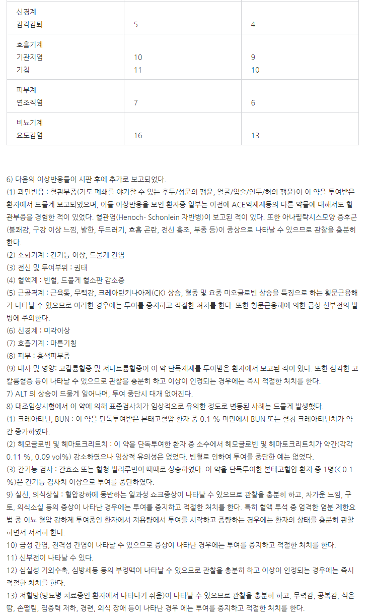 첨부해 드린 이미지 확인하셔서 신중한 투여 하시기 바래요.