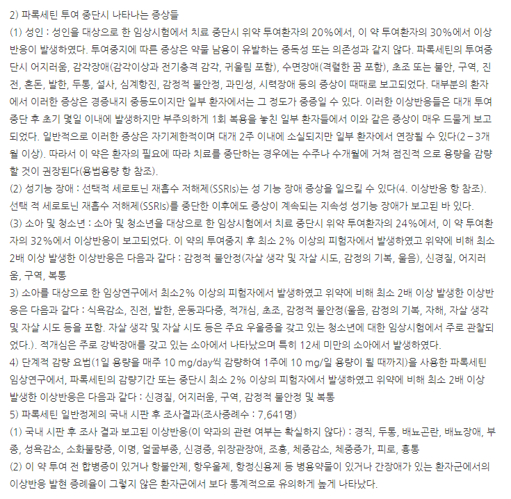 약의 성분은 파록세틴염산염수화물 28.50mg 포함되어 있다고 하니 참고하세요.