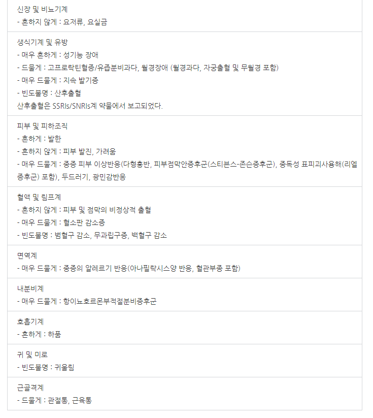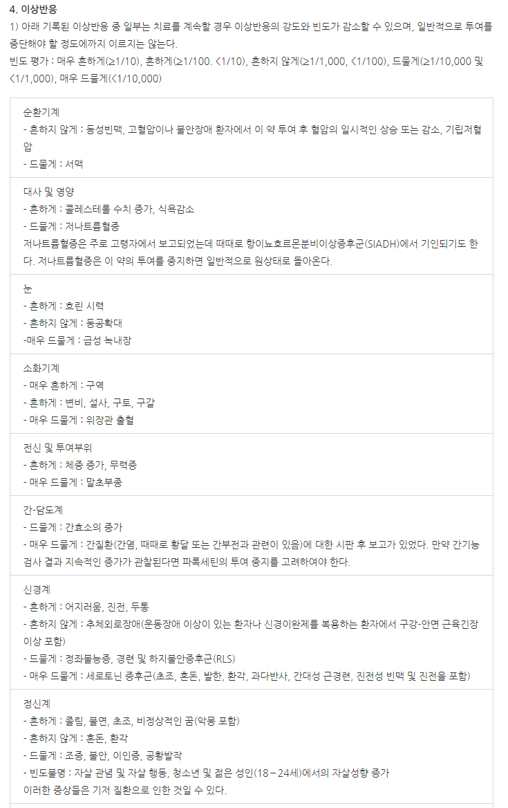 약의 이상반응, 부작용은 아래와 같습니다.