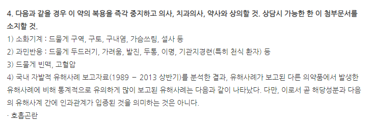 반드시 이상반응과 부작용은 체크해야 합니다.